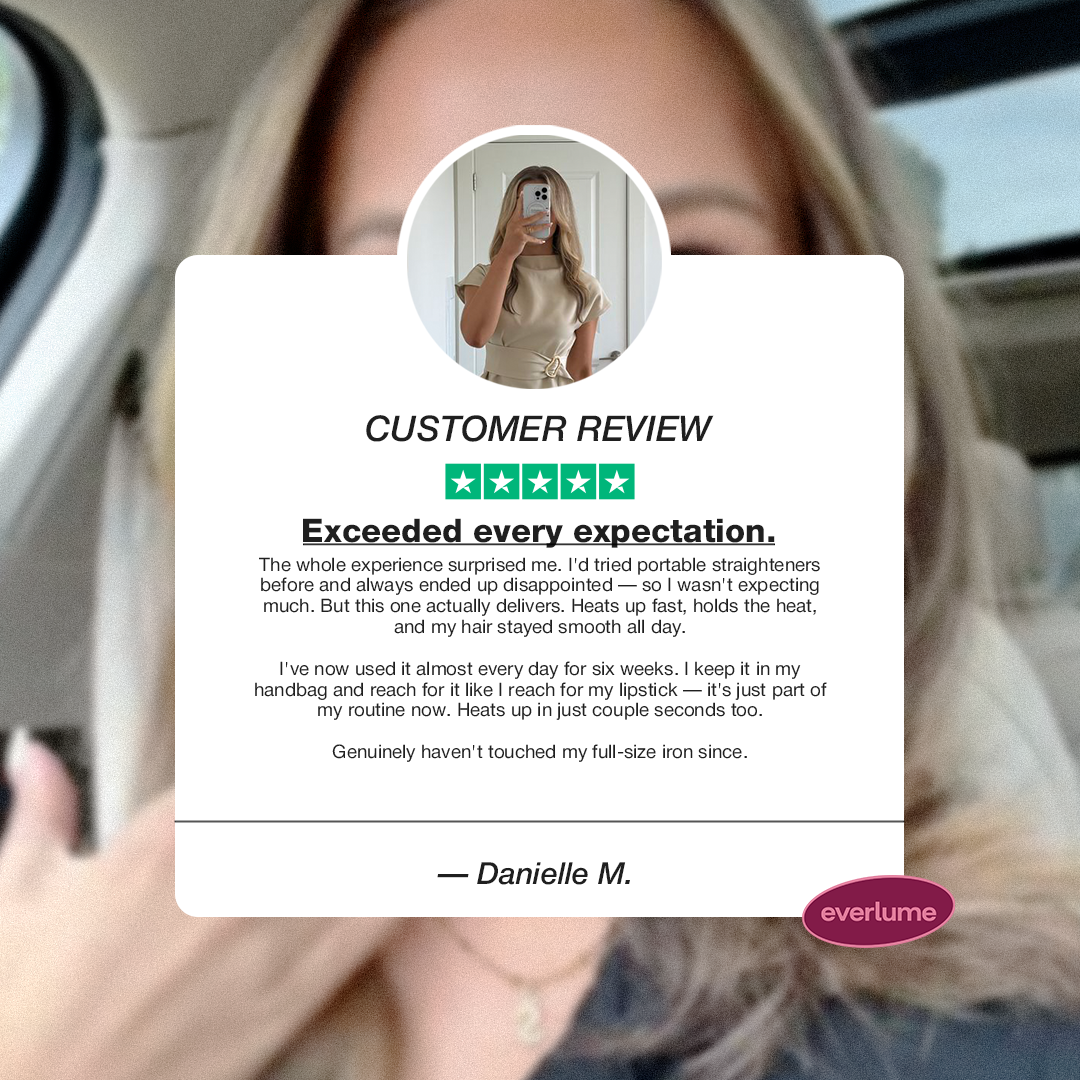 Unlike cheap knockoffs, Everlume Glow Comb™ is built with higher-quality materials, safer internal components, and a longer-lasting battery. It delivers consistent heat, smooth glide, and reliable performance — so you get quick, damage-free touch-ups without worrying about overheating or constant recharging.